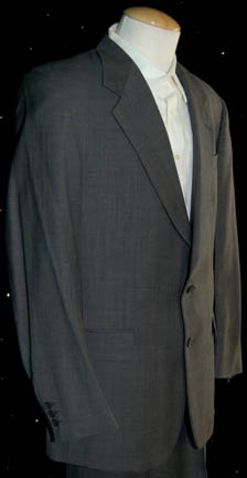 Description: A costume featured in the Star Trek: Deep Space Nine episode “Far Beyond the Stars”; wherein “Captain Sisko experiences a vision from the Prophets where he is “Benny Sisko”, a science fiction writer from the 1950's, who writes a story about the denizens of Deep Space Nine. This costume is for wear by Avery Brooks in the role of station commander “Benjamin Sisko” experiencing life as a sci-fi writer from the fifties named “Benny Russell”; it consists of two long-sleeved, white, button-down dress shirts with French cuffs , a dark gray, wool suit jacket featuring very subtle stripes and matching trousers. A sewn in tag reads ‘Deep Space Nine, Avery Brooks’ and the costumer’s tag reads ‘DS9 #538, Sisko, Avery Brooks’.