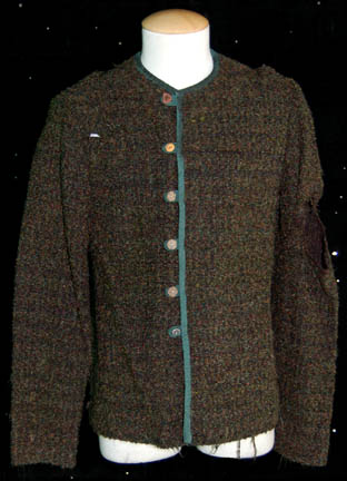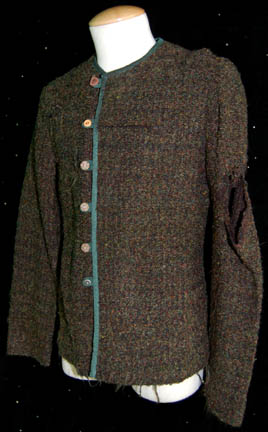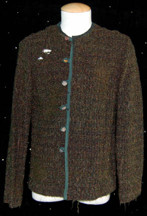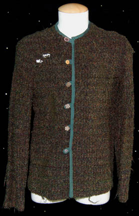 Description: A lot of costume pieces featured in the Star Trek: Enterprise episode “Stratagem”; wherein “Captain Archer” (Scott Bakula) and the crew of the “Enterprise NX-01” try to trick the designer of the Xindi Super Weapon into giving up the coordinates of where it is being tested. This lot consists of three of the shirts that “Captain Archer” wears in the simulated shuttle while trying to convince “Degra” (Randy Ogelsby) that they are friends and have escaped from a prison colony together; three identical boucle` sweaters in various shades of green and brown, dark green trim, carved buttons, and that are distressed to appear as if they have been worn for years on end with general wear and a tear just under the right shoulder. Sewn in tags on all three garments read ‘Enterprise, Scott Bakula' and the costumer’s tag reads ‘#066 Enterprise Stratagem, Archer, Scott Bakula’.