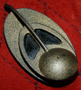 Description: A costume featured in various episode of Star Trek: Deep Space Nine for wear by Nana Visitor in the role of the Bajoran liaison to the Federation aboard Deep Space Nine, “Major Kira Nerys”. This costume consists of a long-sleeved, full-length brick-colored jumpsuit featuring a rust-colored, black stitched, diamond design along the shoulders, a resin rank pin on the left side of the collar, Velcro patch for a commbadge, (included and attached), stirrups for the feet, a matching, plastic belt featuring a textured, diamond pattern, a matching, wide-ribbed corduroy-style holster, and red, leather, chunk heel type boots with the same textured plastic accenting them. A sewn in tag reads ‘Deep Space Nine' but any name that was there has worn away; the costumer’s tag reads ‘DS9, Kira, Nana Visitor, Second Version, Bajoran Military jumpsuit’.