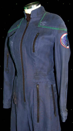 Description: “Hoshi Sato” (Linda Park) was a Human linguist who served onboard the U.S. Enterprise NX-01 during the Star Trek: Enterprise series. This Starfleet uniform was made for wear by Sato during the Star Trek: Enterprise series. It is a blue jumpsuit with Sciences blue trim around the shoulders, a famous NX-01 patch on the left sleeve, a single metal rank pip, multiple pockets and a zip up the front. The uniform is intentionally distressed with holes and wear on the left shoulder, right pocket and limbs. A black sleeveless undershirt with buttons up the front accompanies the uniform. Costume comes complete with costume tag.