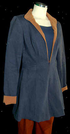 Description: A costume made for wear in the ninth Star Trek feature film “Insurrection”; wherein “Captain Picard” and the crew of the “Enterprise-E” rebel against Starfleet and the Federation to prevent the exploitation of a defenseless race called the Ba'ku. This costume was made for wear by Gates McFadden in the role of the Chief Medical Officer of the Starship “Enterprise-E”, “Dr. Beverly Crusher”, and consists of a long-sleeved, deep blue-colored blouse that sits wide on the shoulders, rust-colored trousers with stirrups for the feet, and a back up, never worn, jacket in a different fabric; a long-sleeved jacket matching the blouse in color, tan, faux-suede accents around the collar and cuffs, loops at the waist for tools, and a zip down halfway down the front. The costume aspects were found separately but all in the “Dr. Crusher” section and has a sewn in tag that reads ‘Star Trek: TNG, Miss G. McFadden’.
