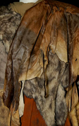 Description: A costume featured in Star Trek VI: The Undiscovered Country for wear by William Morgan Sheppard in his portrayal of the Klingon commandant of Rura Penthe prison. The costume reflects the needs of a character operating in such an inhospitable environment. It is composed of tan colored thickly padded Cabela's name brand huntin trousers, gray trousers for wear over the others with a costumer’s tag reading ‘Klingon Commandant’, and a Cabela’s hunting jacket altered to include various animal skins, several of which are believed to be real, other synthetic. The costume is made to appear thrown together from multiple components to make life more comfortable working on a frozen asteroid.