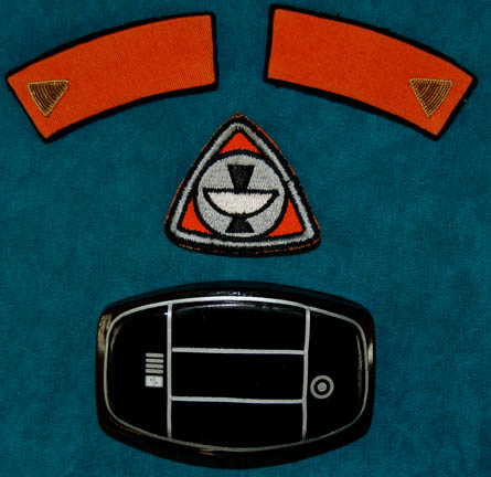 Description: A brown colored long sleeved Class-B Starfleet uniform shirt featured in Star Trek I: The Motion Picture. The shirt comes with these unattached elements: a sciences orange Epsilon IX assignment patch, a pair of orange division strips, and a plastic bio-monitor. The shirt is intended for male wearers.