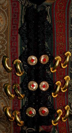 Description: “Brunt” was played by notable Star Trek actor “Jeffrey Combs” and was a Ferengi liquidator for the Ferengi Commerce Authority featured in the Star Trek: Deep Space Nine episode, “Family Business”. This costume lot includes two black sleeveless jumpsuits with pleats down the length and gold colored metal buttons down the wings. One was made for wear by Combs and has a sewn in tag that reads, “Deep Space Nine, Jeffery Combs”. The other was made for wear by his stunt double. There are two waistcoats, each patterned in multicolored fabric with black lace and metal accents on the front. Like the jumpsuits one was made for wear by Combs and has a sewn in tag that reads, “Deep Space Nine, Jeffery Combs”. The other was made for wear by his stunt double. Also included is one sleeveless top in a multicolored check pattern with detailed collar. It was made for wear by Brunt's stunt double. The accompanying costume tags read, “DS9 #469, Brunt, Jeffrey Combs” and “Stunt Brunt”.