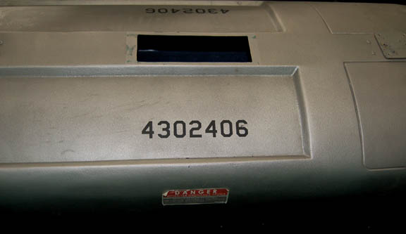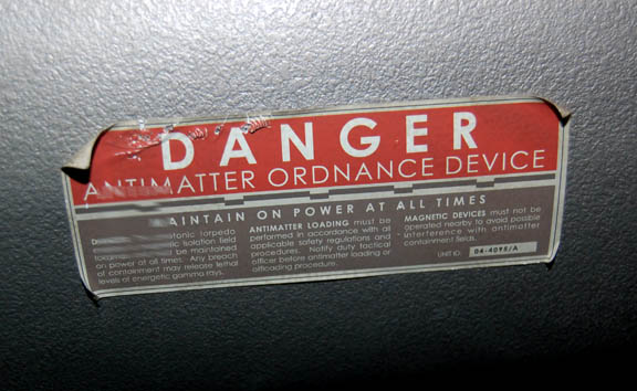 Description: An item featured in various episodes of Star Trek: Enterprise; a “photonic torpedo” the style of which appeared in the third and fourth seasons. First introduced in the episode “The Expanse”, the torpedo is composed of fiberglass painted metallic silver. Its dimensions are approx. 84 X 24 X 12 inches.