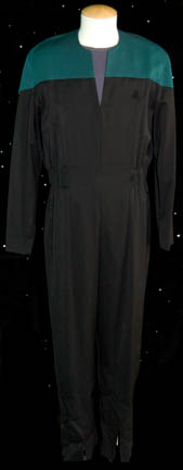 Description: “Tom Paris” (Robert McNeill) was a Flight Controller onboard the U.S.S. Voyager throughout the Star Trek: Voyager series. This lot includes a Sciences Blue Starfleet uniform made for wear in the Star Trek: Voyager episode, “Author, Author”. The jumpsuit is black with Sciences Blue shoulders, loops around the waist for Away Gear (not included) to attach, a zip up the front and a small Velcro patch on the left breast for a combadge (not included) to attach. The sewn in tag reads, “Voyager – Robert McNeill”. Two gray sleeveless Starfleet shirts accompany the jumpsuit. One has pectoral padding for definition and snaps under the crotch. The sewn in tag on one reads, “Voyager – Robert McNeill” and the other reads, “Voyager – Robbie McNeill – 6.98”. The civilian lot was not from the episode “Author, Author”. It includes a rust color shirt with a zip up the front and a lavender sweater. The rust color shirt has a sewn in tag that reads, “Voyager – Robbie McNeill” and the sweater has no sewn-in tag. Both costume lots come complete with costume tags.