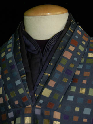 Description: The Romulans are a warrior civilization from the planets Romulus and Remus who founded their Romulan Star Empire two thousand years ago. This male Romulan costume was made for wear during Star Trek X: Nemesis and includes a blue jacket-style top with multicolored squares and a triple padded collar. Worn underneath is a dark blue short-sleeved top and a blue silk dickie. The corresponding trousers are navy blue. Attached to the front of the jacket is a gray resin Romulan Bird-of-Prey emblem pin. Costume comes complete with costume tag that reads, “ST X – Nemesis”. Also included is a brown Romulan wig that was made for use for the filming of Nemesis but according to the accompanying costume tag it was not used.