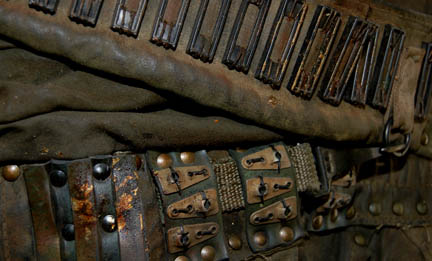 Description: A costume featured in Star Trek X: Nemesis for wear by Kolaran Raiders attacking an away team from the “USS Enterprise-E”. The costume is a full length jumpsuit with quilted accents, and lace up size adjustments at the ankles and cuffs with an elaborate chest piece of olive drab colored vinyl with metal and molded rubber accents woven together for an interesting piece of armor. The item also comes with a pair of shoes (not pictured) and the left breast is adorned with an ‘Orpheus Mining Colony’ patch having been featured in the Star Trek: Enterprise episodes “Demons” and “Terra Prime” without the armor.