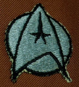 Description: A brown colored Starfleet Class-A uniform featured in Star Trek I: The Motion Picture. The costume is a set of brown trousers with a uniform top that features an affixed silver backed Starfleet emblem patch on the left breast indicating the wearer to be a part of the security division and an unattached filled bio-monitor. The costume is intended for male wearers.