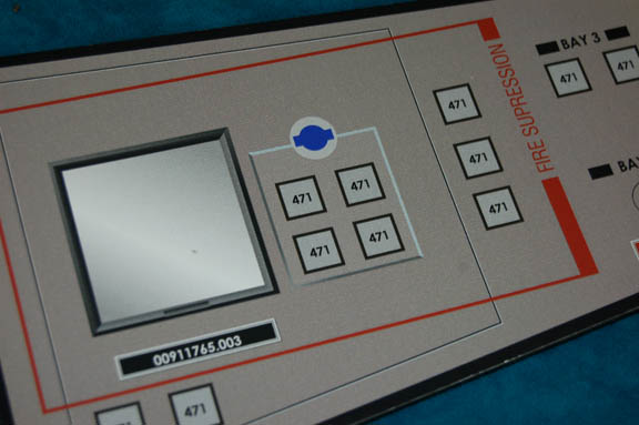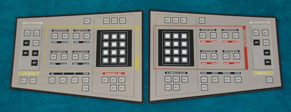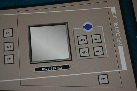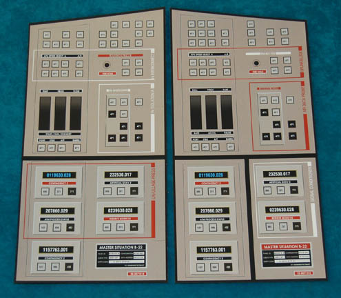 Description: A lot of prop starship consoles similar to those used on the “Enterprise NX-01” and the” NX-Beta” from the episode “First Flight”. These items are paperboard-backed in black, in various shapes, depicting graphics of various ship functions; some small trapezoidal ones appear to be involved with docking procedures, fire suppression and fuel control where larger ones of the same shape are involved with sensor functions and engine performance. A few depict random bulkheads of an indeterminate use, some are for inertial and navigational guidance, but the largest ones are for use in propulsion and operations. Items measure approx. 10 X 5, 11 X 9, 15 X 11, 18 X 11, 20 X 10, and 28 X 11 respectively.