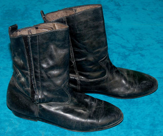 Description: Black Starfleet boots made for wear by “Lt. Barclay” (Dwight Schultz) during the Star Trek: Voyager series. The boots are made of black leather and are size 11. Inside they read, “Dwight Schultz”. The three rank pips were also made for wear by Comm. Barclay with his futuristic Starfleet uniform (Not included) in the Star Trek: Voyager episode, “Endgame”. The three pips attach to a single bar on the back.