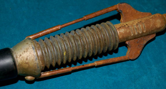 Description: A prop weapon for use by multiple species in multiple episodes of Star Trek: Enterprise; specifically used by the Klingons in "Judgment" and the Tandarans in "Detained". Item is rubber cast with a black vinyl handle, "metal" accents, along the shaft, beveled indentations near the rounded end, distressed for appearance to look “rusted”, and including a custom, molded holster with belt clip. Dimensions are approx. 24 X 3 X 2 inches.