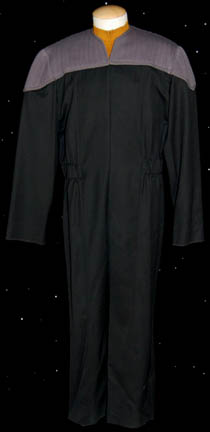 Description: A lot of a costume and costume aspects featured in the eighth and ninth Star Trek feature films, “First Contact” and “Insurrection” respectively. This lot consists of the Starfleet uniform that came to be called the “First Contact-style”, a long-sleeved, full-length, black jumpsuit featuring blue-gray, quilted shoulders, a Velcro patch for a commbadge (not included), hoops on the waist for tools, a long-sleeved undershirt in Operations Gold with matching division colors around the cuffs of the jumpsuit. A long-sleeved, brown, button-down shirt featuring a subtle, black, zigzag pattern; an olive-green vest with a diamond-shaped, quilted design, a rugged zipper down the front, red, leather strips on the shoulders, light wear around the abdomen, and black socks. The uniform features a sewn in tag that reads ‘Data, H20, Stunt, Dry Suit’ and the under shirt designates itself as actually worn by Brent Spiner but being the “wet suit” from the scene in “Insurrection” where “Data” (Brent Spiner) walks into the lake chasing “curious” readings. The vest has a Western Costumes tag that denotes wear by Brent Spiner.