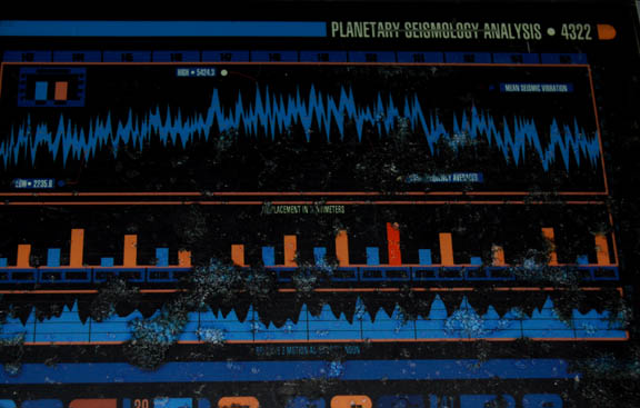 Description: A prop item of the style featured in the later Star Trek feature films. This item is a PADD (Personal Access Display Device), and is a dark-gray plastic featuring gold and silver-colored detail and a graphical application of a “Planetary Seismology Analysis” that features several multi-colored “buttons”, a “Seismic vibration” wavelength graph on the top, a “Displacement” bar graph in the middle, and a “Relative Motion” graph on the bottom. A gold-colored switch on the lower left hand side that activates an internal light source powered by a standard 12 volt DC adapter (not included). There is significant damage to the graphical image itself so a replacement image of a “Surface Geology-Planet Formation” graphic believed to have been featured in Star Trek: Insurrection is included as well. The item measures approx. 14 X 11 X 0.5 inches.