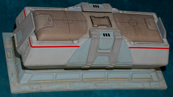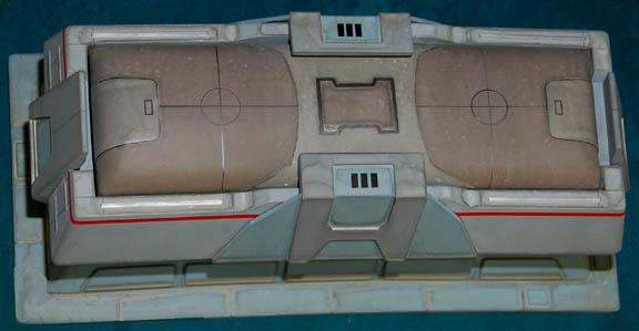 Description: A pair of model elements featured in the Star Trek: Deep Space Nine episode “The Way of the Warrior, Part II”. The items were fabricated as models for on screen use, depicting new weapons improvements to the hero station “Deep Space Nine” which were deployed against a Klingon fleet when they attacked the Federation in the episode. The models depict a deployed and a non-deployed photon torpedo array. The deployed piece is a highly detailed to show its extended support pillars and the hardware involved in its extension out of the station itself. The second, non-deployed piece is intended to show the item closer to the station. One is believed to be for the scenes depicting the item ‘firing’ torpedoes from the docking pylons and the other to show them firing from the station rings. Both items are extraordinarily detailed and painted to appear exposed to space and fitting with the Starfleet color schemes. The metal strips on the sides of the items are phaser banks. The squatter item measures approx. 13.25 X 6 X 5 inches, the taller measures approx. 9.5 X 4 X 7 inches. The items come packaged together in their original wooden shipping crate that measures approx. 19.5 X 19.5 X 11.5 inches.