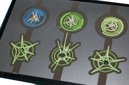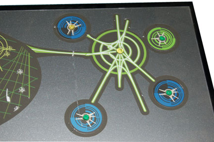 Description: STAR TREK: ENT “XINDI STE DRRESSING LOT” FROM “THE HATCHERY” A lot of set dressings featured variously throughout the third season of Star Trek: Enterprise but specifically in the episode “The Hatchery”; wherein the “Enterprise NX-01” finds an abandoned Xindi-Insectoid ship with a hatchery of unhatched eggs that “Captain Archer” (Scott Bakula) becomes alarmingly protective of. This lot of set items consists of five small, gray, poster board signs with red and white Xindi iconographic script on them, an elongated, black, foam-core, trapezoidal shape featuring a silver-colored graphical application, dark-gray details, a row of five circular appliqués in either green or blue, with white Xindi iconographic figures in the middle and clear acrylic nodules; further circular shapes but with much more pronounced Xindi symbols and blinking green lights activated by a switch at the top and powered by three AA batters all located on the reverse. A triangular piece is made with the same black foam core, a blue/gray-colored graphical application featuring further Xindi iconography with untested banks of lights along a multi-colored “tentacle” that extends out from it. The backside consists of the wiring for the lights with three wires leading out from it and also has residue on the surface from use in the episode “The Hatchery”. The last piece is a long, rectangular of the same black foam core and silver-colored graphical application featuring an impressive central black graphic with a green grid, numerous Xindi symbols of various sizes, and a clear acrylic nodule in the middle; in addition, there are further Xindi symbols with four smaller circular objects radiating out from them all with similar nodules as well. The items measures approx. 7 X 7.5, 17 X 17, 21 X 11, and 30 X 10 all with a negligible height.