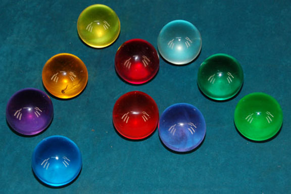 Description: A lot of prop items similar to those featured in episodes Star Trek: The Next Generation like “Tapestry”; wherein “Q” (Jon DeLancie) allows “Captain Picard” (Patrick Stewart) to go back to a turning point in his life to change something he had always considered a great mistake. This lot consists of ten acrylic spheres about the size of a billiards ball, in various, quasi-transparent colors. The items have a diameter of approx. two inches.