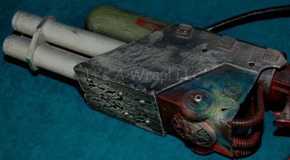 Description: A prop laser mining tool made for and featured in Star Trek VI: The Undiscovered Country. The item is made from molded resin and metal components, the tri-barrel emitter is made from silver colored metal as is the barrel shield that has been dulled down to appear used. The item is painted red and green and featured Klingon themed decals. A covered cord extends away from the item and a button ‘trigger’ is present. The shoulder brace is broken free of the item and clearly is fortified by metal. The two pieces depict evidence of previous repair and part of the item is chipped where the pieces connect. The item is said to be one of only four ever produced and measures approx. 18.75 X 4.75 X 8.75 inches while the additional brace measures approx. 12.25 X 2.25 X 7.25 inches.