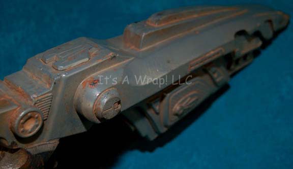 Description: A prop item featured in the Star Trek: Enterprise episode “Marauders”; wherein a group of Klingons are harassing and stealing from a dilithium mining colony that the “Enterprise NX-01” comes upon. This item was originally a Bajoran phaser rifle for use in Deep Space Nine but was altered and repainted for use as one of the weapons that the dilithium miners had to defend themselves from the Klingons with; it is a sturdy, gray, molded-rubber carbine with black painted accents and which has been distressed for effect. The item measures approx. 25 X 8 X 3 inches.