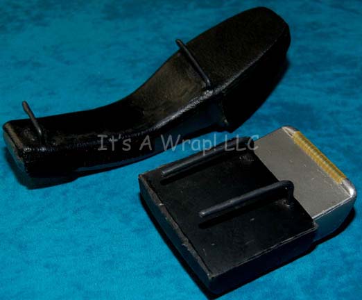 Description: A pair of props featured variously in Star Trek episodic television for use by characters in Starfleet or the Federation, a tricorder and phaser, both molded into holsters. The items are intended to appear as though they can be removed and used, but were not the hero props for the episode in which they appeared. The tricorder is made from molded rubber with yellow tinted acrylic accents, painted metallic silver, and adorned with graphical applications to suggest hardware, it is part of the holster which features sturdy metal wire backs to fit into ‘away team’ gear loops on costume uniforms (sold separately). The phaser is made from molded foam rubber, painted metallic silver with similarly painted faux buttons, the holster also features the same style of wire backs for costumes. The items measure approx. 4 X 3e.25 X 2 inches and 7.75 X 2.25 X 2.25 inches respectively.