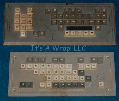 Description: A lot of four differing button panels featured in various episodes of Star Trek: Enterprise like ‘Terra Prime” and “Horizon”. The items are keyboard style featuring faux rubber buttons with numeric values. The items are adorned with graphical applications made to suggest dimension. One of the items features metallic silver adhesive detail with an embedded light and wire that is disconnected from a power source, though connecting the wire leads to a 9volt battery makes the red light blink brightly. The second item is a static keyboard with a differing button detail distressed to appear ‘used’. A third item is made to appear blown out with a cavity in the center that appears ‘scorched’ and has a metal plate on the reverse that is adorned with tape information inscribed ‘Int. Mining Corr/Airlock Panel blast’ and more. These items measure approx. 14.25 X 6 X 1.25 inches. A fourth keyboard is made on high quality foam core with faux rubber buttons and is distressed to appear ‘dirty’. The item measures approx. 13.25 X 5.25 X 0.5 inches.