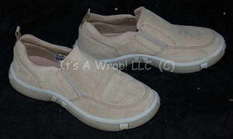 Description: A costume featured in the Star Trek: Enterprise episode “Stigma”; wherein “T’Pol” (Jolene Blalock) finds that she has been inflicted with a neurological disease as a result of the hastily induced mind-meld she was subjected to last year. This costume consists of a long-sleeved, crème-colored jacket featuring a tiny waffle board design, satin trim, and a mandarin collar; corresponding trousers in the same style, and matching rubber soled shoes. A sewn in Enterprise tag reads ‘Ken Gruz #040’ and the costumer’s tag reads ‘Enterprise 040 Stigma, Vulcan Technician, Ken Gruz’