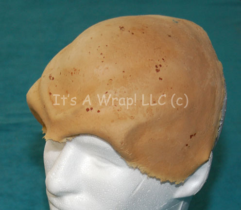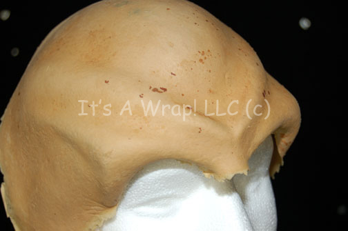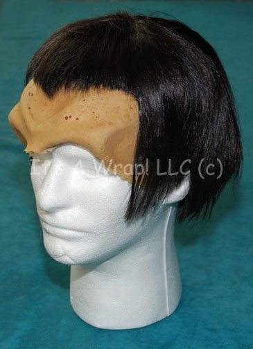 Description: A special effects make-up application and wig made to represent Romulan characters in Star Trek X: Nemesis. The item is molded foam rubber made to represent the strong forehead ridges of the Romulan people, the item is actually quite soft and flexible. In excellent condition the item features a general speckling of dark spots due possibly to the flesh tone paint applied to create a lifelike appearance. The wig is black colored hair shaped in the style of the Romulan with an angular appearance and arched points.