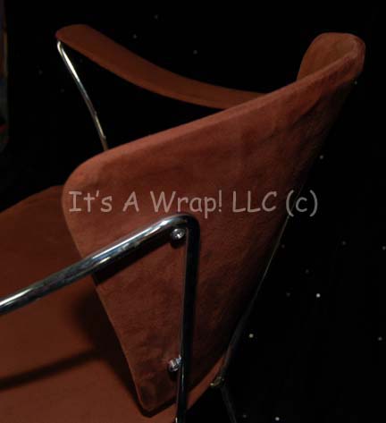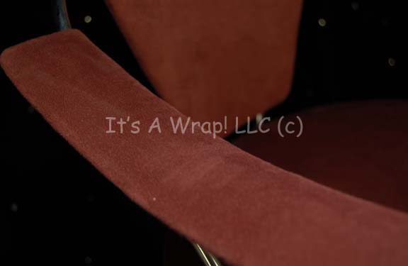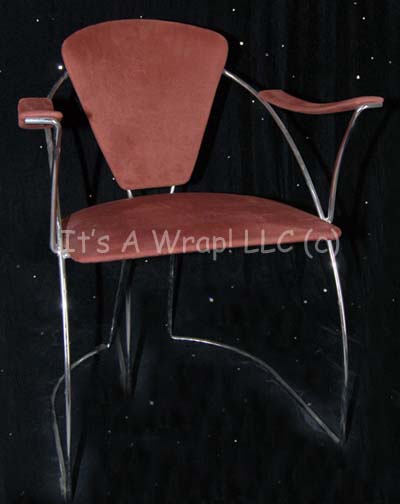 Description: A pair of metal framed chairs with beautiful micro-suede upholstery like those appearing on various sets in Star Trek feature films numbering VIII – X. The items feature sturdy backs, seats, and arms. They measure approx. 35 X 21 X 22 inches.