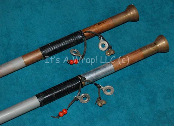 Description: A lot of prop items featured in the second half of the two-part, TNG episode “Birthright”; wherein “Lieutenant Worf” (Michael Dorn) ends up at a Romulan prison camp and finds several Klingon children who know nothing about their heritage. The lot includes two “Qu’vak” spears; just under javelin size, silver, brass, and copper colored spears, with grooves near the tip, a widened, brass-colored base, and black, leather cording wrapped around the handle where the hand would go and decorated with beads and metal rings. These two items are the last of their kind this far located and all have a length of approx. 40 inches and a diameter of approx. 2 at their widest point.