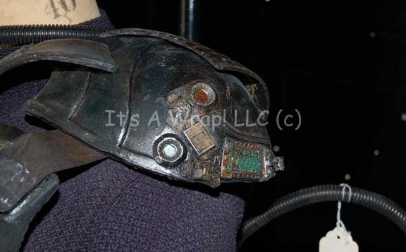 Description: A Borg drone costume featured in the Star Trek: The Next Generation episode “Descent, Parts I and II”. The costume is a form fitting jumpsuit with multiple molded black rubber ‘body armor’ components that feature various Velcro connections and attachments with plastic tubing. The jumpsuit is a black thermal-underwear styled affair with attached feet, a zip up the spine, and a zippered inseam, perfect for affixing all of the molded features with heavy duty Velcro placements. The molded rubber ‘exo-plating’ armor is composed of items that wrap around the body and fasten through either belt or Velcro placements with multiple molded rubber raised accents to suggest technology. They comprise a wraparound for the thighs and shins, biceps and forearms, a torso covering that the wearer steps into and fastens by way of belt with Velcro, a chest armor piece, an abdomen armor piece, a set of shoulder plates, a set of neck tubes, a pair of gloves, and a pair of spats. Multiple loose items were located with the costume, several are Velcro backed for attachment to corresponding pieces that fill space and allow the armor to appear more covering. The costume pieces are labeled ‘Tafoya’ and a sewn in Star Trek TNG tag in the thermal jumpsuit is inscribed ‘Mr. A. Tafoya’. A second tag reads ‘Steve Lambert’. Adrian Tafoya is a recurring Star Trek background actor, Steve Lambert is a veteran Star Trek Stunt actor, and there is no indication as to when he performed in this under suit.