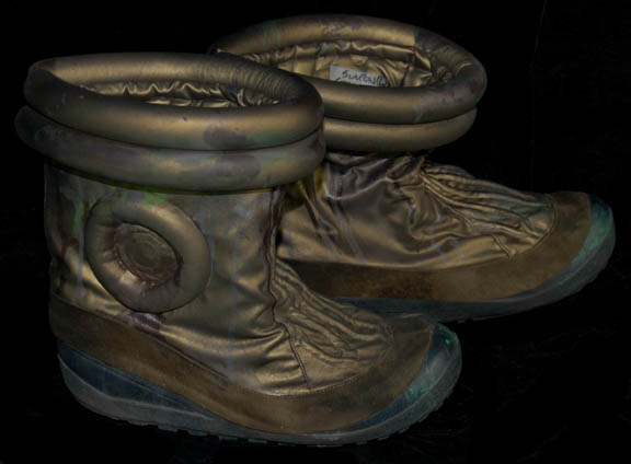 A pair of leather boots painted rust colored with insulated interiors and matching vinyl Bajoran accents featured in various episodes of Star Trek: Deep Space Nine. The boots are ‘College Comfort’ name brand, made for female wearers, size 8, and come with a vinyl belt that matches the boot accents. … |