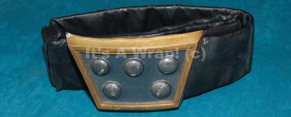 A Klingon belt and buckle featured in the Star Trek: The Next Generation episode “Aquiel”. The item is a thick vinyl belt with a resin buckle that is wire backed for the size adjusting Velcro placements on the reverse. The buckle is painted metallic gold around the outside border and … |