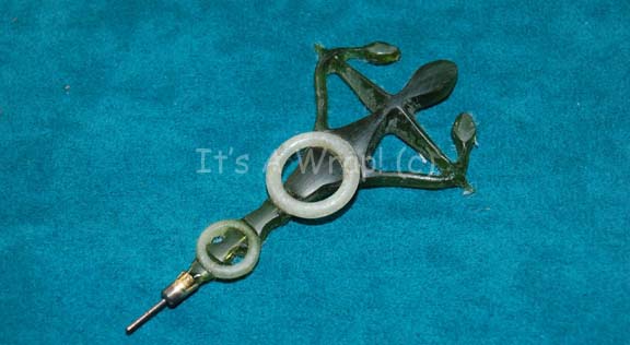A prop engineering tool featured in the Star Trek: Enterprise episode “In A Mirror Darkly, Part II”. The tool is made of resin with metal components including an adjustable stand and metal tip. Measures approx. 8 ¼ x 2 ½ x 2 inches. |