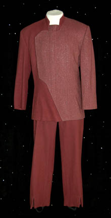A two-piece costume worn by Golden Globe award winning actor Frank Langella in his portrayal of “Minister Jaro” of the Bajoran Provincial Council. His role as a treacherous councilman and leader of the xenophobic group ‘The Circle' led to a scandalous affair with then ‘Vedek’ “Winn Adami” (Lousie Fletcher). His … |