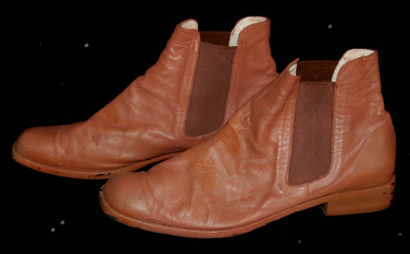A brown and mustard colored two-piece uniform with boots featured in various episodes of Star Trek: Deep Space Nine. Comprised of trousers with black elastic stirrups at the feet and a matching uniform top with a brown body and mustard colored sleeves and shoulders. The boots are mustard painted vinyl … |
