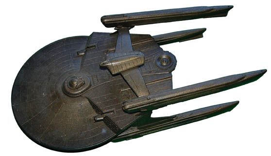 This starship model was designed for use as set dressing for either Star Trek: The Next Generation or Star Trek: Deep Space Nine. Its planned use was as set dressing for a captain's ready room or crew quarters and is of an as yet unnamed ship class. The item is … |