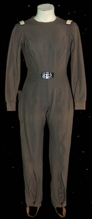 A costume featured in Star Trek I: The Motion Picture for wear by actors portraying Starfleet crewmen. This gray colored Class-D costume jumpsuit features a pair of affixed command division strips on the shoulders and a plastic bio-monitor at the waist. The costume features a functional sewn on faux flap … |