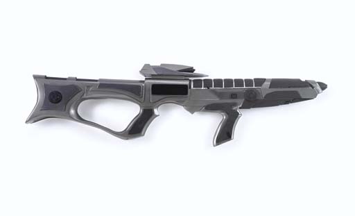 A prop phaser rifle resin cast construction with internal battery-powered lights [untested] and retractable shoulder strap -- <I>36in. long</I> -- made for <I>Star Trek: First Contact</I> |