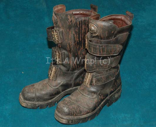 A pair of boots like those featured in the eighth Star Trek: feature film “First Contact”. These boots are of the famed “New Rock” brand, very sturdy, mid-calf, black leather boots featuring large metal clasps with the brand name carved into them with which wide, Velcro flaps fit into securing … |