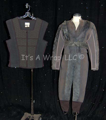 A costume featured in various episodes of Star Trek: Deep Space Nine for wear by Jem’Hadar soldiers. This costume consists of a sleeveless, full-length, jumpsuit with the top half a black, spandex-like material, the bottom being neoprene over a gray fabric featuring a starburst pattern down the middle and stirrups … |