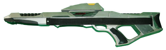 This Mark II Phaser Rifle was made for the Star Trek VIII - First Contact. Made of cast resin, painted silver to give a metal finish and black for definition. Three acrylic pieces have been attached to simulate controls. The piece is completed with a non-retractable black strap. Measures approx. … |