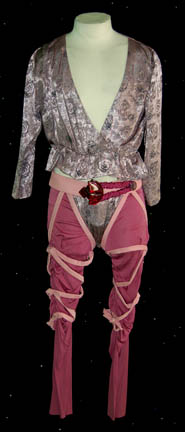 When the Enterprise-D arrives at “Angel One” they find a planet controlled by a matriarchal society where the gender role of male and female are reversed. In the female dominated society males wear lighter, more revealing clothes such as this costume; fuchsia spandex pants with pink straps crisscrossing the legs … |