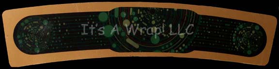 A set piece featured in the Star Trek: Enterprise episode “Chosen Realm” for use in a console. The item is a piece of smoked acrylic with a translucent graphical application adhered to the reverse that appear when backlit to depict a series of static circular ‘interfaces’ that may have acted … |