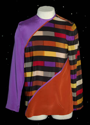 The purple chiffon swimsuit and shirt with a tan and brown stripe worn by Avery Brooks while portraying “Commander Sisko” in the pilot movie episode of Star Trek: Deep Space Nine, “Emissary”. Making the best of his new assignment, Sisko receives a gift that allows him to contact the gods … |