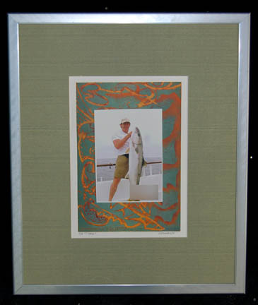 A piece of set dressing featured in various episodes of Star Trek: Enterprise like “These are the Voyages…” in the quarters of “Commander Tucker” (Connor Trinneer). The item is silver colored metal framed artwork with a color copied picture of an unknown Caucasian male holding a large fish adhered to … |