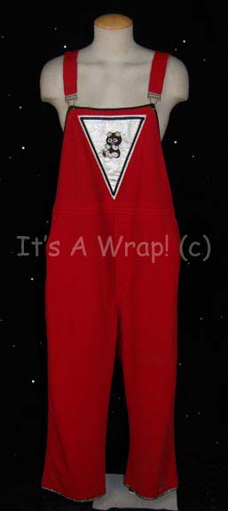 A costume in the style never seen “Star Trek: Phase II”. This item is red overalls with black trim, metal buckles on the straps, a large, inverted, silver triangle in the center featuring further black trim and a patch of a black and white bear in the middle, pockets in … |