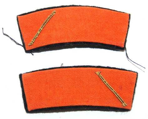 A pair of orange sciences division-rank strips featured on Starfleet uniforms in Star Trek I: The Motion Picture. The item is orange fabric on a black felt board with a gold thread line on one end indicating the wearer to be an undisclosed rank. This style of accent would have … |