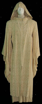 A costume featured in the tenth Star Trek feature film “Nemesis” for wear by a member of the Romulan Senate in one of the opening scenes of the film. This costume consists of a long-sleeved, full-length, metallic-copper colored robe featuring three false collars each with various colors and designs matching … |