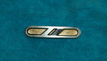 A metal provisional rank pin made for ‘Maquis' crewmembers who integrated into the Starfleet crew of “USS Voyager” following their displacement into the Delta Quadrant during the pilot episode of Star Trek: Voyager, “Caretaker”. This pin indicates the provisional rank of ‘lieutenant (junior grade)’ due to its pair of molded … |