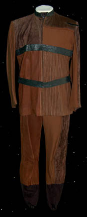 In the Delta Quadrant, alien males occasionally come across a dream come true, becoming breeding stock for a race of attractive females. The problem is that the mating ritual leaves the male dead. This is the costume of those (un)fortunate souls, a gray tunic with a black stripe running round … |